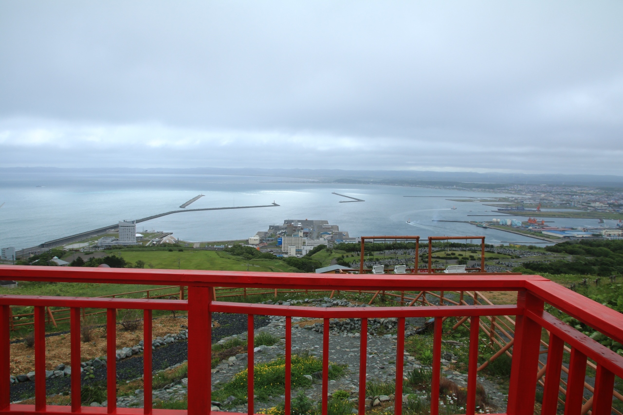 高さは約250mということでかなり高く、その上高台にあるため、晴れれば利尻・礼文島はもちろん、遠くサハリン近辺の島々まで見えるということです。ということは、曇りで見えませんでした。