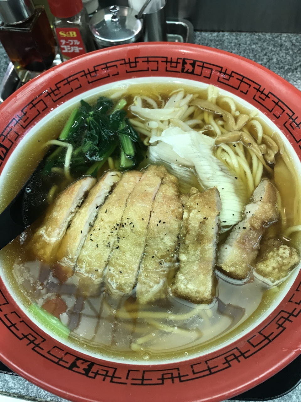 有楽町ビルの地下にある万世のパーコー麺のお店です。カウンター数も多く 外国の方にも人気のようです。パーコーも1.5倍や2倍、野菜入りのパーコーハーフなど種類が豊富です。小腹が空いた時でもとても利用しやすいお店です