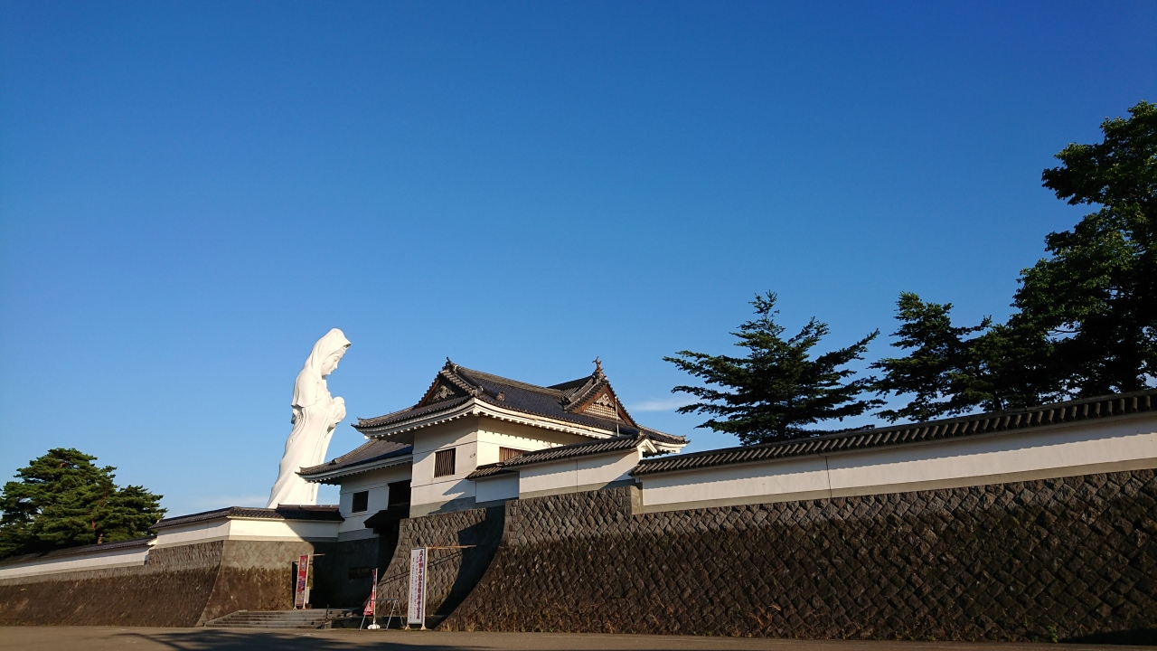 磐越自動車道の会津若松インターチェンジから郡山方面へ向かうと、左側に白くて大きな観音像が見えてきます。仙台や釜石の大観音と同じで、なぜここに?という違和感があります。行ってみたら有料の観光施設になっていました。