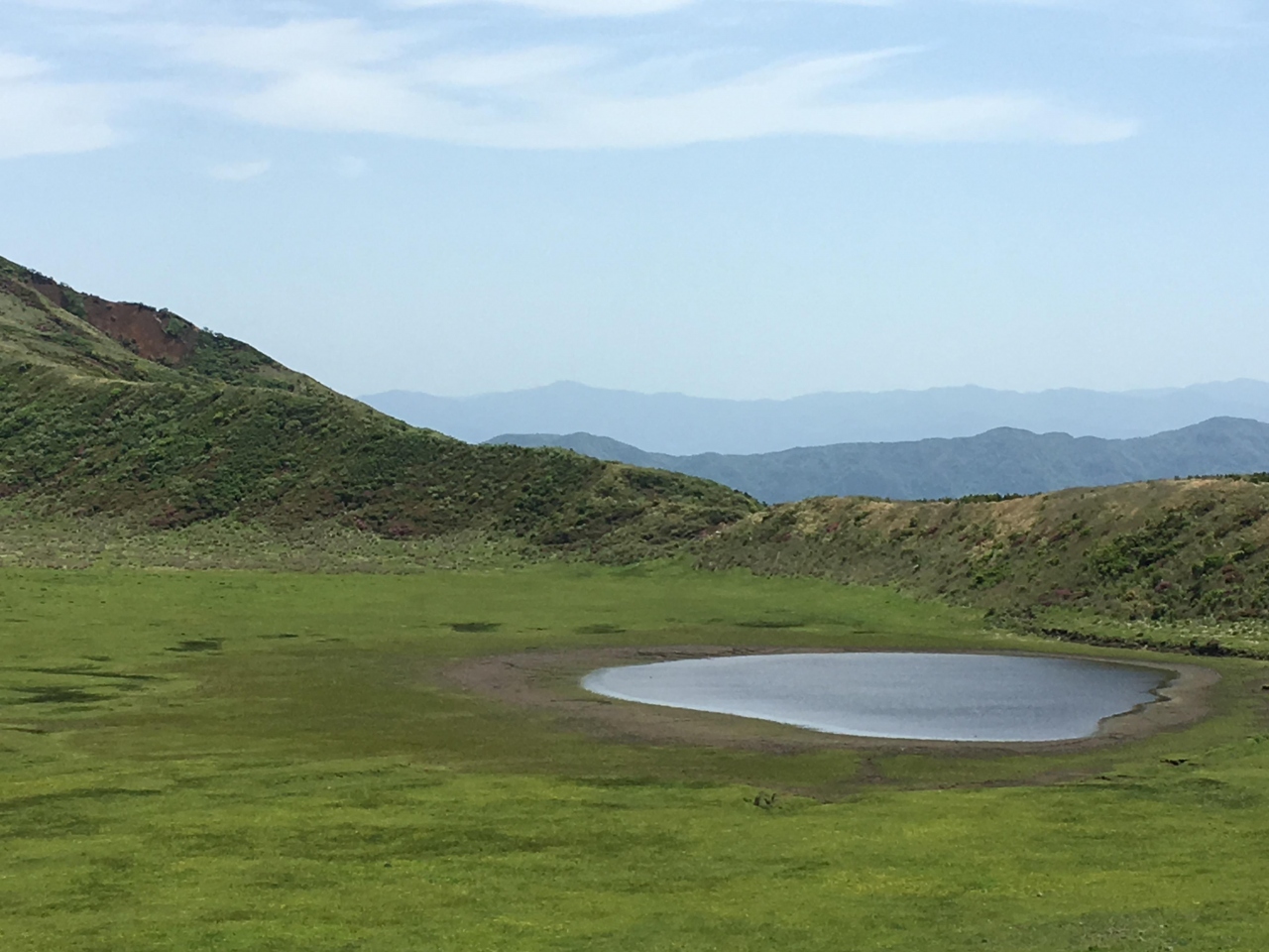 阿蘇五岳の一つ、烏帽子岳の麓に広がる火口跡にある大草原と雨水が溜まってできたといわれる池とが織りなす自然のコントラストが非常に美しい景勝地。タイミングによって池の大きさが違うのと天気が悪いと霧が出て笑えるくらい真っ白で何も見えない状態になるので行くときはそこだけ注意が必要。