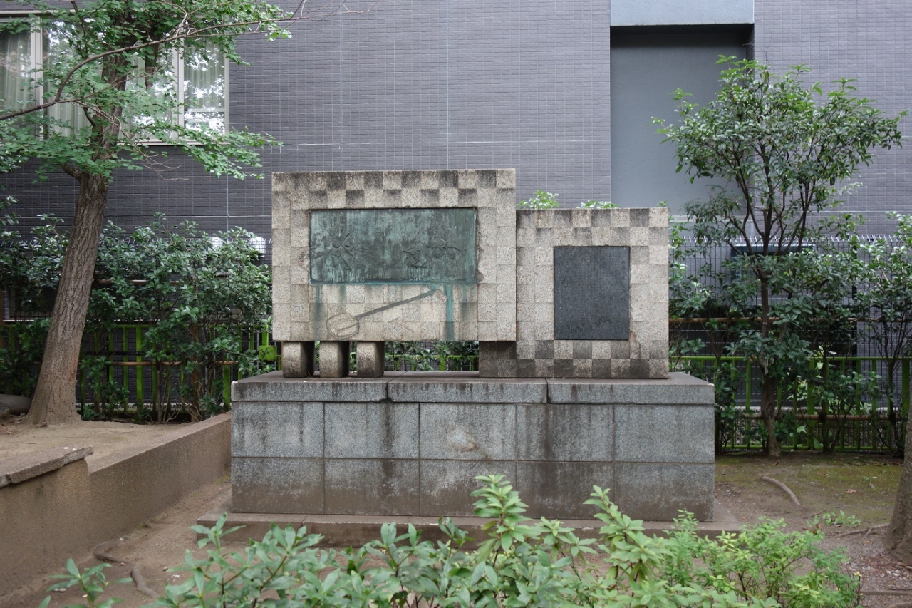 地下鉄小伝馬町駅から近い十思公園内に置かれたこちらの記念碑は江戸長唄三味線の一派杵屋に関連する石碑でした。市松模様に三味線が描かれた石碑に青銅のプレートがはめ込まれ、美しい姿を見せていました。他にもいろいろな史跡が有る公園なので一見の価値ありです。