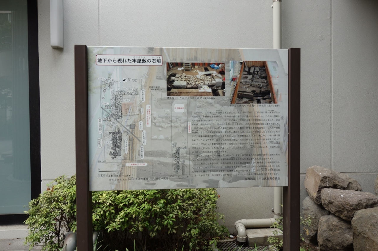 地下鉄の小伝馬町駅に近い十思公園が有る場所はかつては伝馬町牢屋敷でした。公園内には牢屋敷の石垣が地下から発見された際の様子を解説した説明板が立っていて為になりました。園内には他に牢屋敷で処刑された吉田松陰の碑などいくつもの碑がありました。