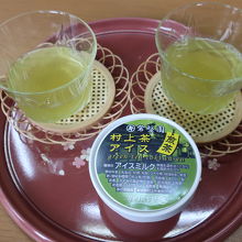 村上の町屋のギャラリーやまきちの斜め対面にある老舗の茶舗です。店舗十年の創業と180年近い歴史を持つお店です。村上散策で町屋のギャラリーやまきちを出た後、とても暑く店頭にあった村上茶カップアイスの幟を見て一服しに入店しました。早速3種ある村上茶アイスの緑茶味を頼むと丁寧の冷たい村上茶も一緒にサービスして頂けました。お茶もさることながら、老舗茶舗のアイスはコンビニで売られている緑茶アイスとは一味違い濃厚な味でした。