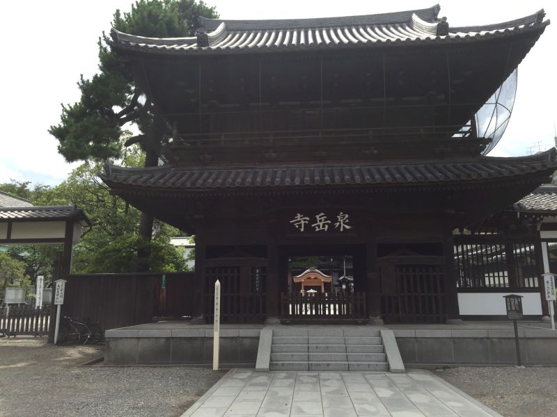 中門の先にある門が山門です。大きな門で古いものです。ません。泉岳寺という文字が、立派な感じを強調させていますが、取り立てて何かある訳ではありません。観光のために作られたものではないので、当然のことでしょう。