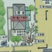 境内の案内図を見ると、泉岳寺本堂を真正面に見て左側には、主税梅、瑤池梅、血染の梅、血染の石、首荒い井戸等々、沢山の見どころがあります。