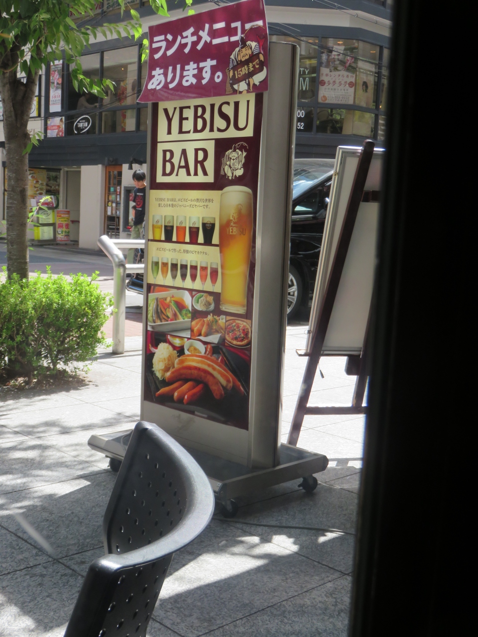 京都駅周辺の京都駅ビルをヨドバシカメラに向かって歩くと1Fにオープンテラスもあるエビスバーがあります