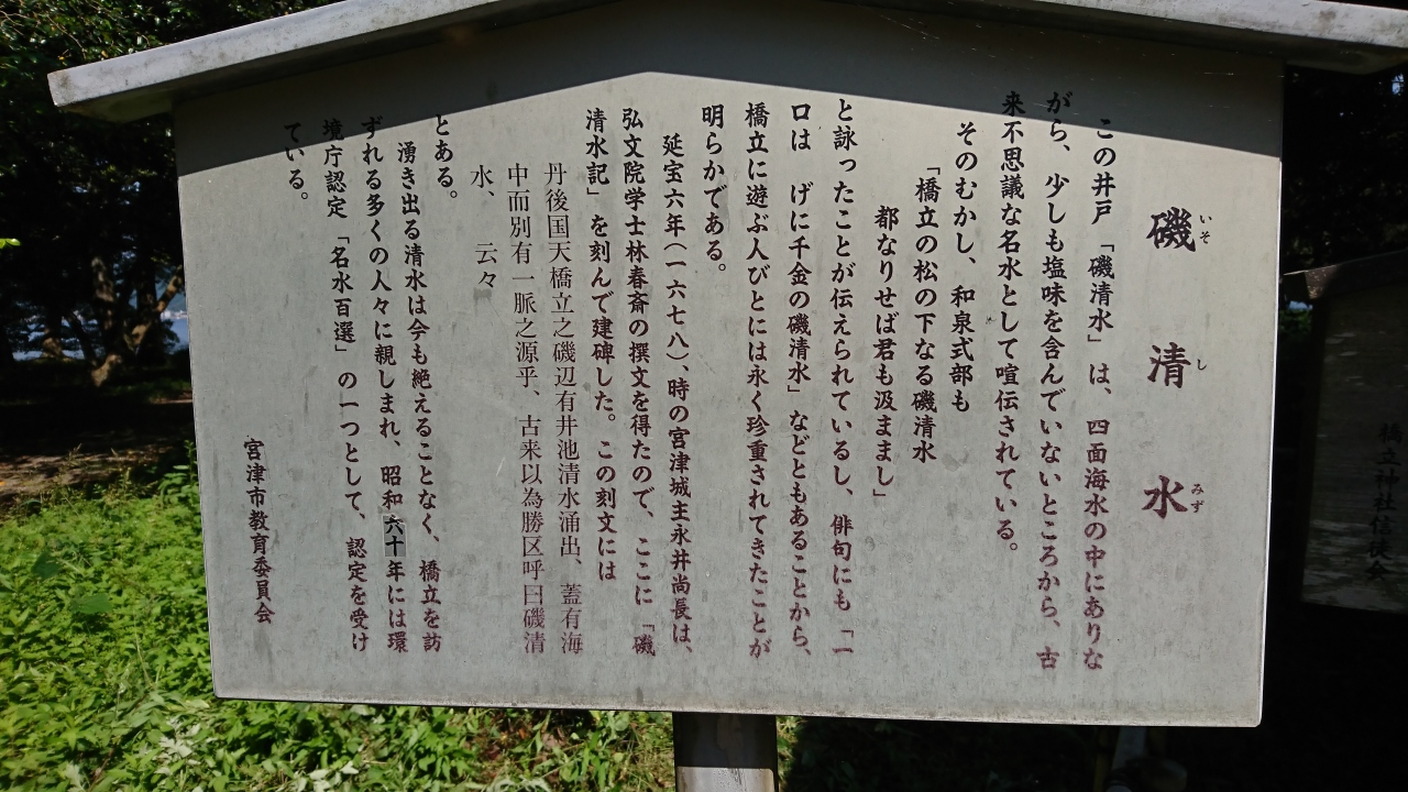 天橋立神社の横にある、四方を海に囲まれているのに清水が湧くという不思議な湧水です。。