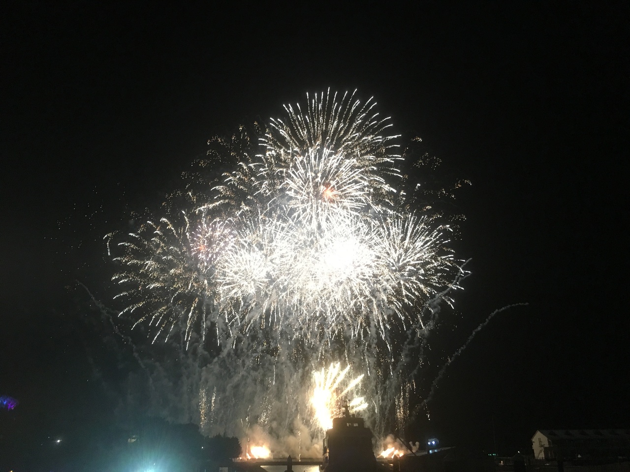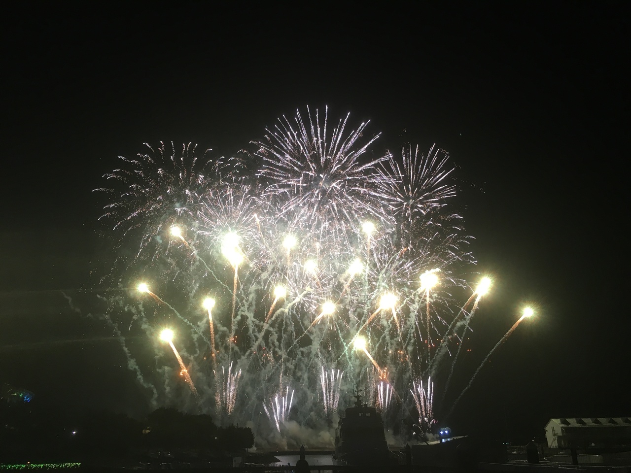 夜の8時半から10分ちょいの間ですが、音楽に合わせひっきりなしに打ち上がる花火はそこそこ感動です。
