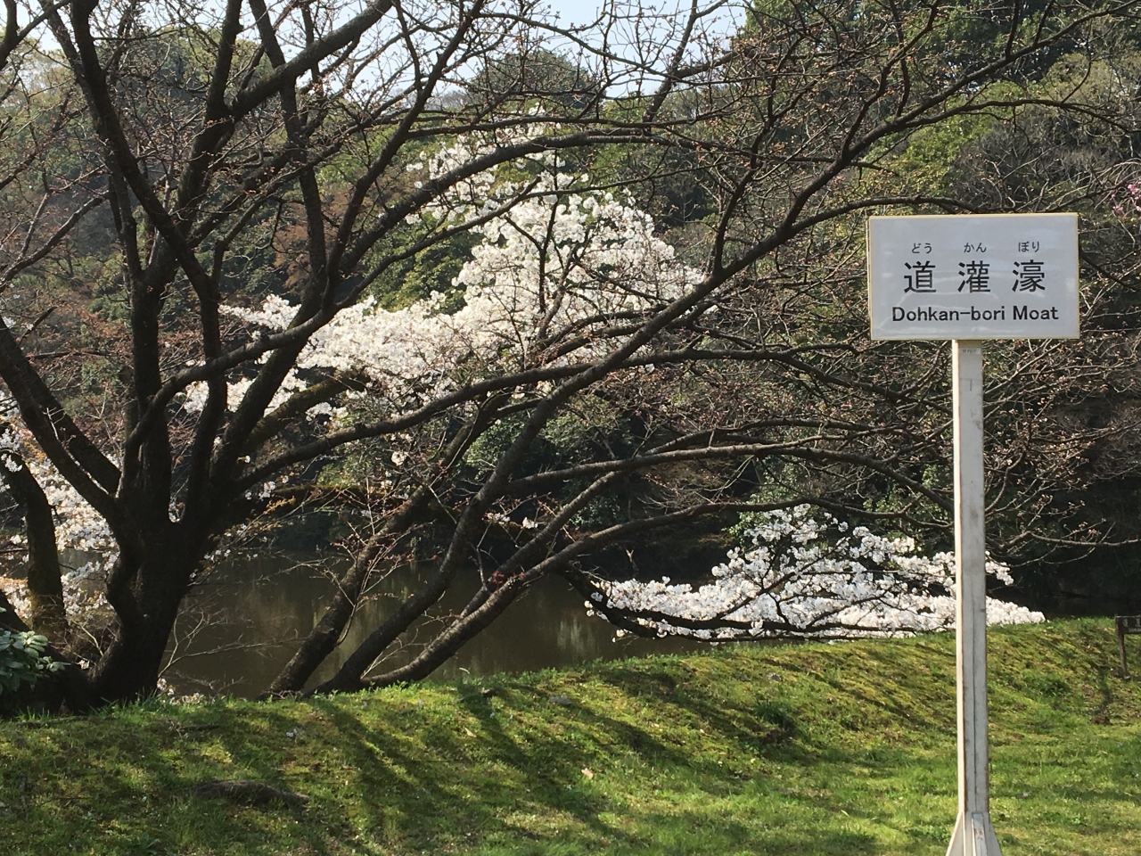 人の流れに沿って歩いて行くと右に蓮池濠そして左にこの道灌濠が見えてきます。
