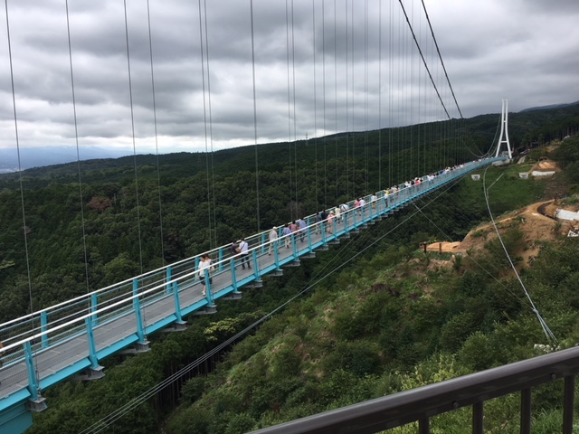 最近できた人気の観光スポットです。この吊橋を渡るには1000円支払う必要があります。橋の幅自体は狭く、左側の一方通行です。横に並んで歩くことはできない狭さです。歩いているとかなり揺れるのでびっくりしました。眺めは抜群です。