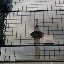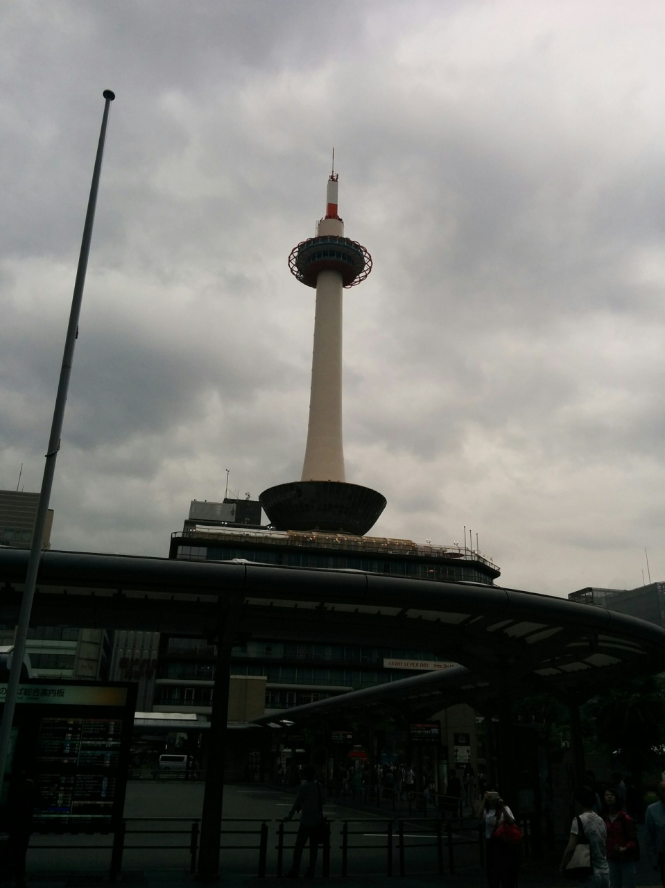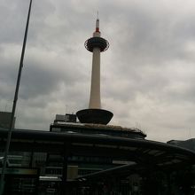 京都駅正面から北方向の烏丸通りを望むと、その目の前に京都タワーを見ることができます。