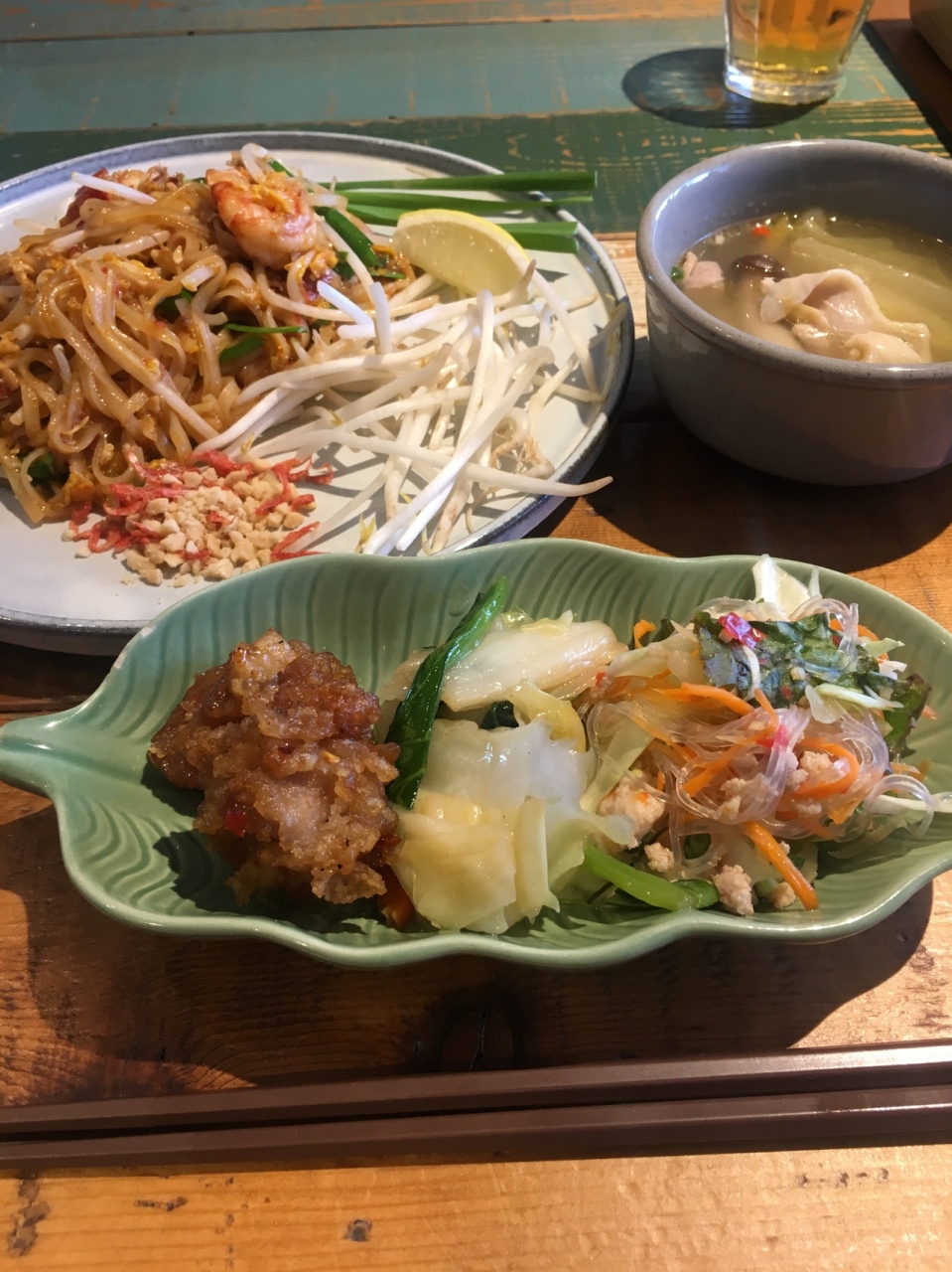 サラダのヤムウンセンとスープが辛くて、暑さが吹き飛びます。