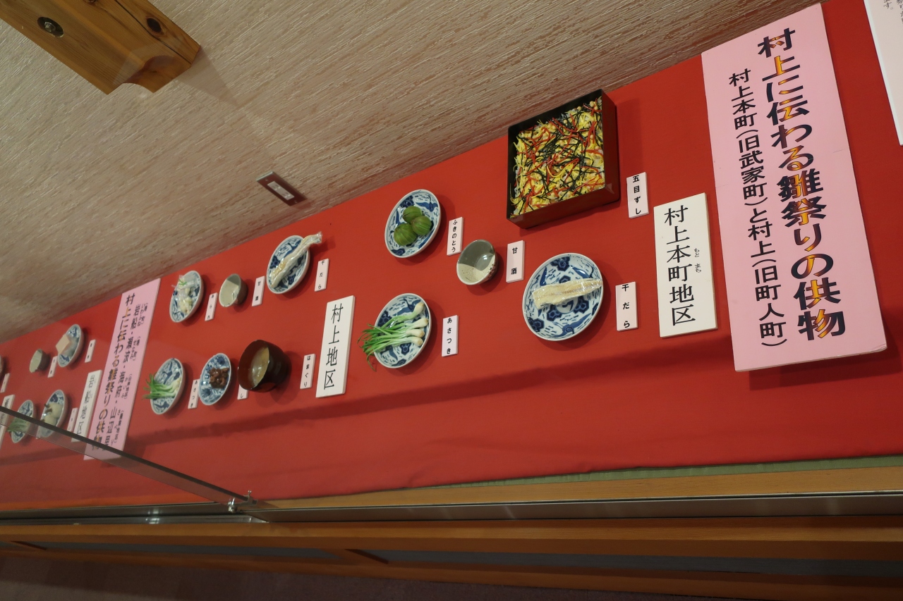 村上小学校の東側、三の丸記念館の隣に村上市立村上歴史文化館があります。若林家住宅と村上市郷土資料館との共通券で入館することができます。建物は一見古そうですが、明治期の旧藤井医院を模して造られた病院建築。中に入ると、村上の伝統手的な衣・食・住に関する資料を展示しています。特に食の展示は食品サンプルで展示されており、面白い展示となっています。しかし、この様な展示に興味のない人には余計で共通券を安くしてくれればと思う人もいるかと思います。