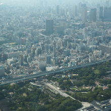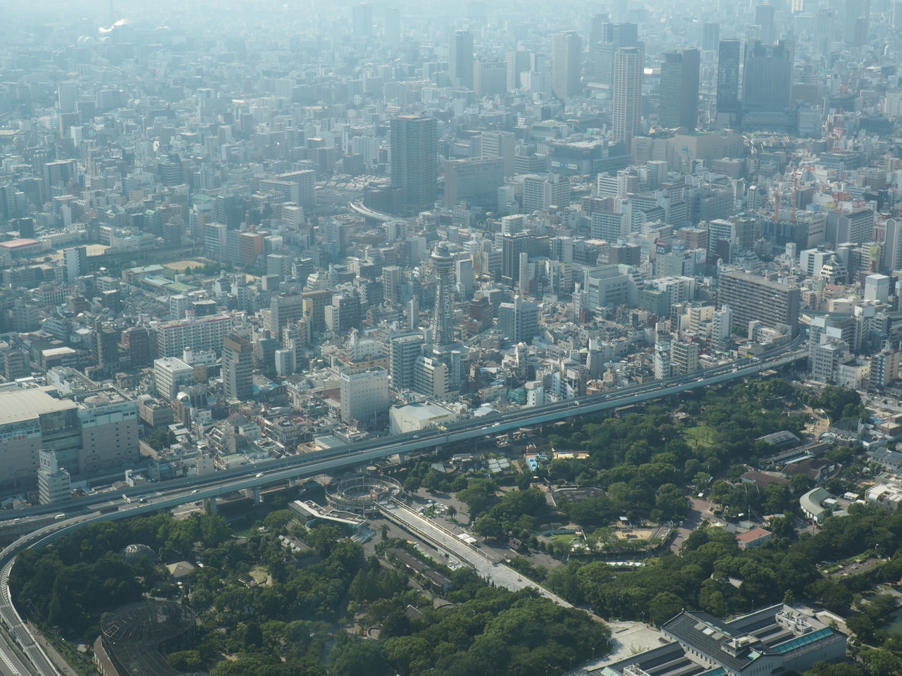 通天閣が遥かに下に見えて、四天王寺の伽藍の並びもキレイに見えた。大阪城も見える。