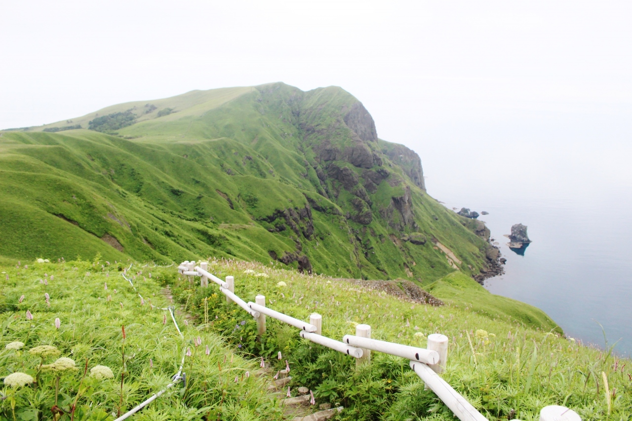 ここから、元地灯台を経由し知床まで歩くトレッキングコースがあり、景色や花を見ながらゆっくり歩いて2時間くらいで到着した。桃岩展望台だけ見て引き返すのは勿体なく、是非歩いてみたい。