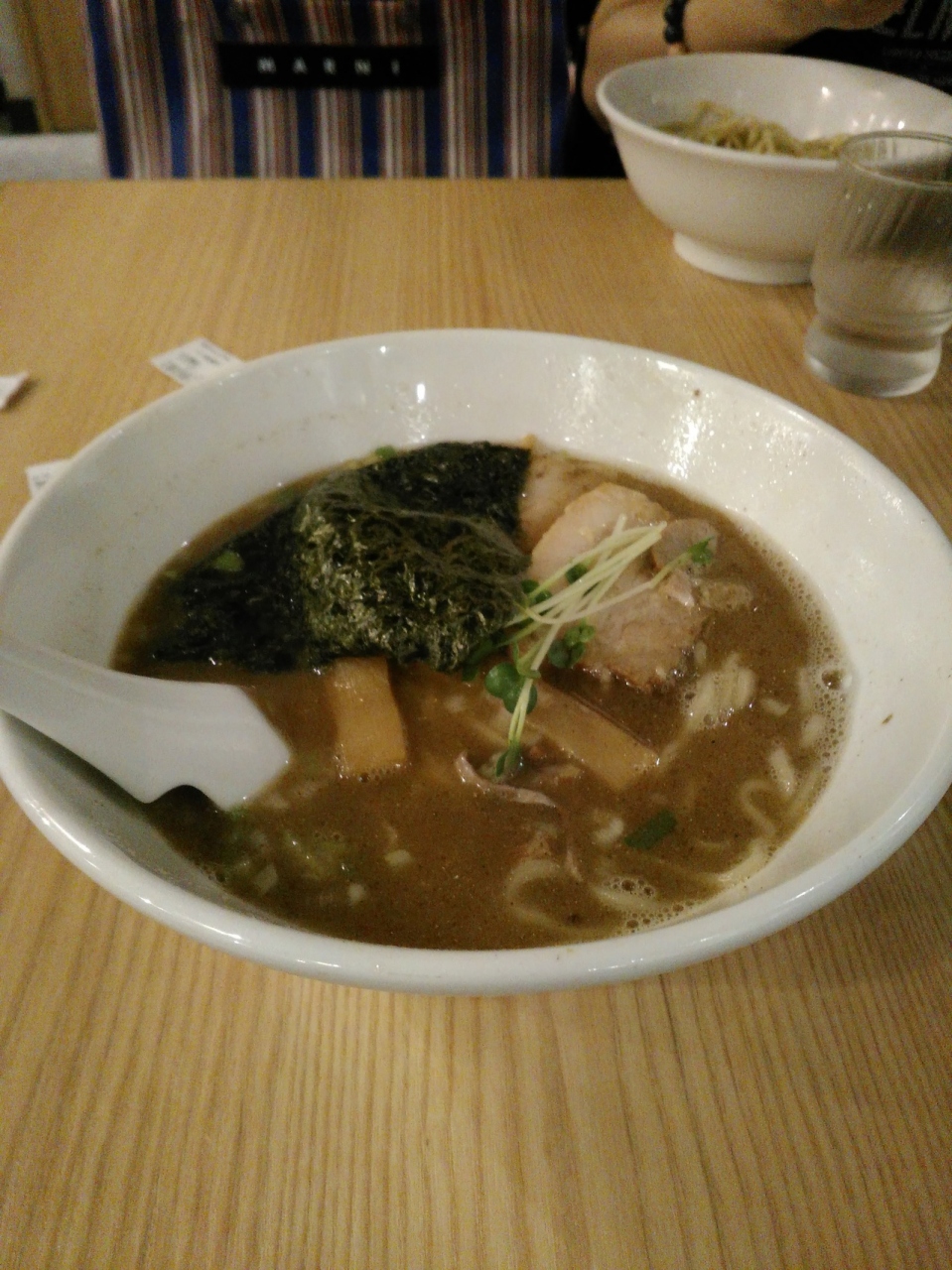 煮干しから取ったダシのスープがとても力強いラーメンです、家内がつけ麺、私がふつうのラーメンを注文しましたが、どちらも大変美味しく頂きました。つけ麺の方がスープは味が濃い様でした。あと水餃子も注文しましたが、こちらも美味しかったです。