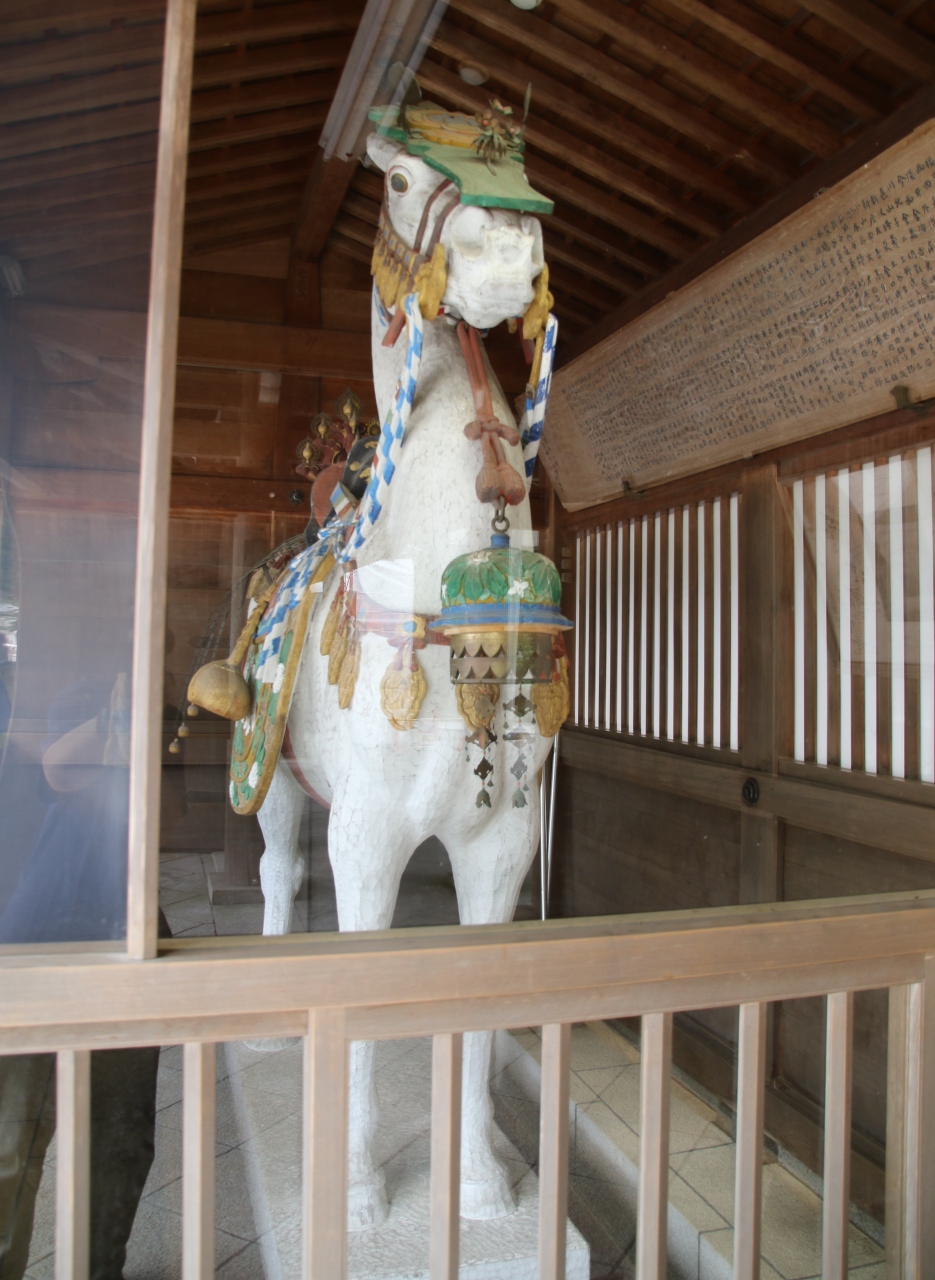 神門を入ってすぐの右手にあり絢爛豪華な装飾を施された白馬が鎮座しています。