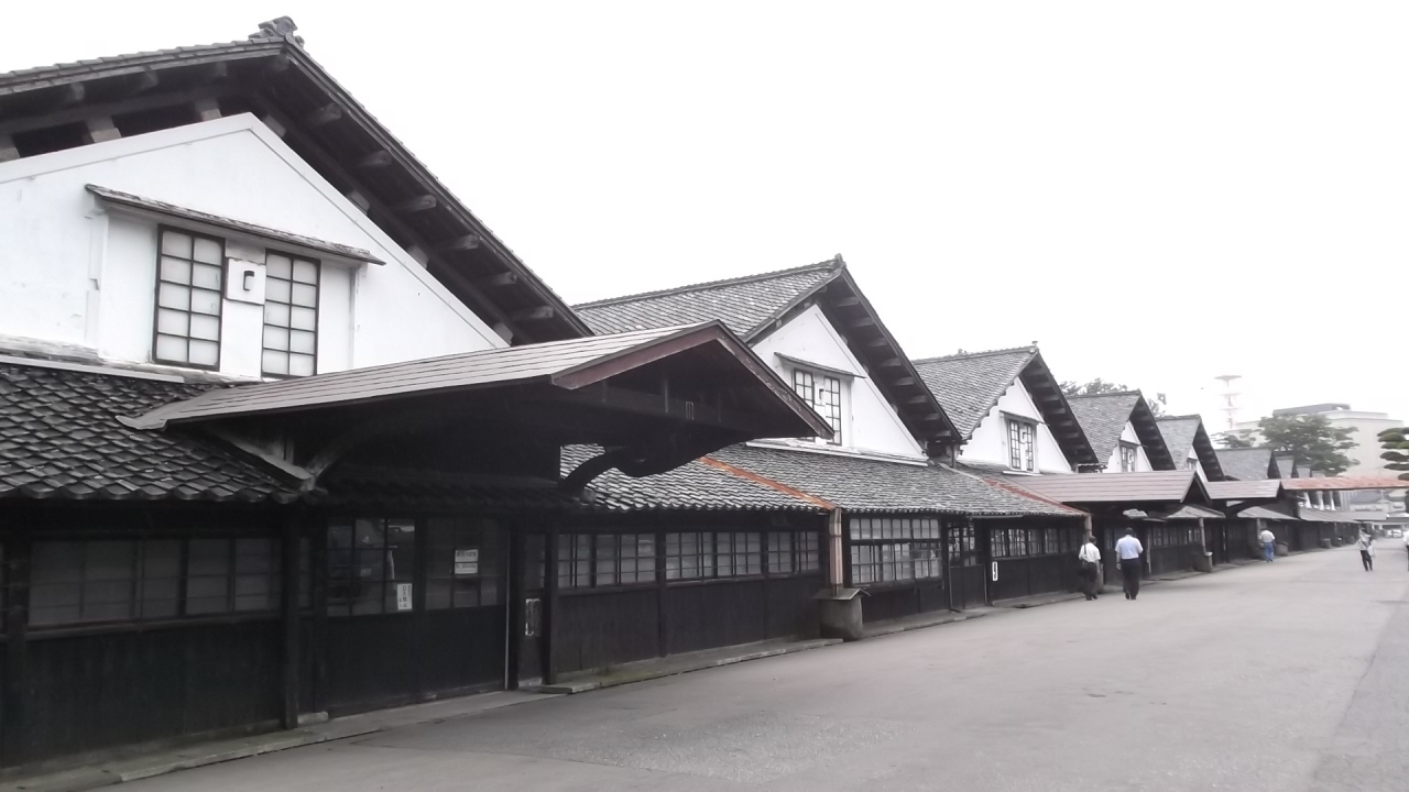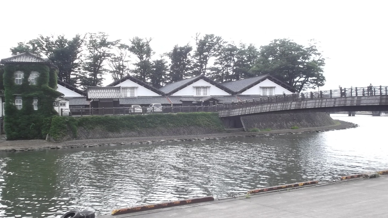 酒田駅から路線バスで10分、酒田の中心地で白壁・土蔵が残り庄内米の売買で繁栄を期した。JR東日本おとなの休日倶楽部で吉永小百合さんもここを歩いた。