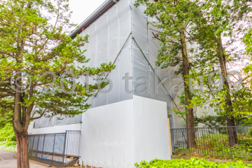 有章院霊廟二天門は改修工事のため覆い屋で全体を囲われていました。