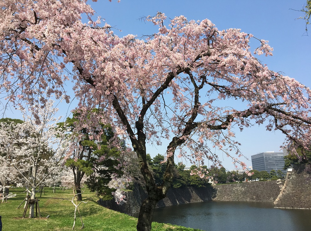 満開の桜の花と相まってとても美しく絵になるお濠でした。