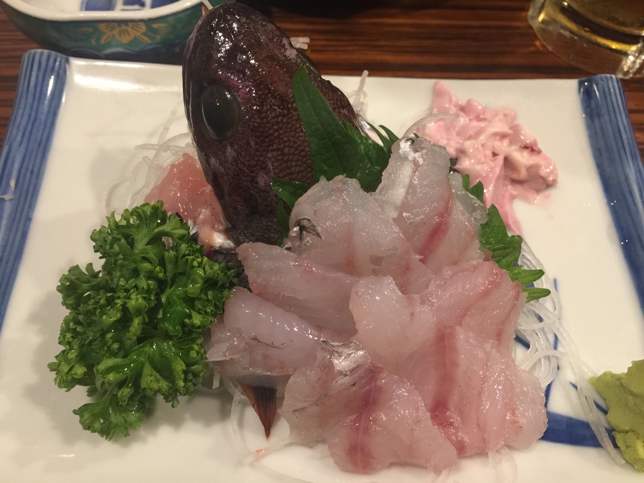 JR函館駅から歩いて3分くらい、大門横丁の手前にある居酒屋。呼び込みのお兄さんがほぼ常時立っている。入り口すぐにテーブル席、奥は座敷、間にカウンター席が8席くらい。活イカを発注したが、今年のイカはサイズが小さく、コスパ的には合わないと思う。ドンコ刺が個人的にはオススメ。