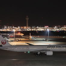 国内線ターミナルのデッキと異なり24時間開放されているので、荒天時を除きいつでも航空機を見ることができます。スペースは広くあるものの、離れた場所にある駐機場を使用する便は見ることができません。デッキには羽田空港に就航している航空機の尾翼や、空港で働く車についての紹介があるので、興味があれば見てみると面白いと思います。