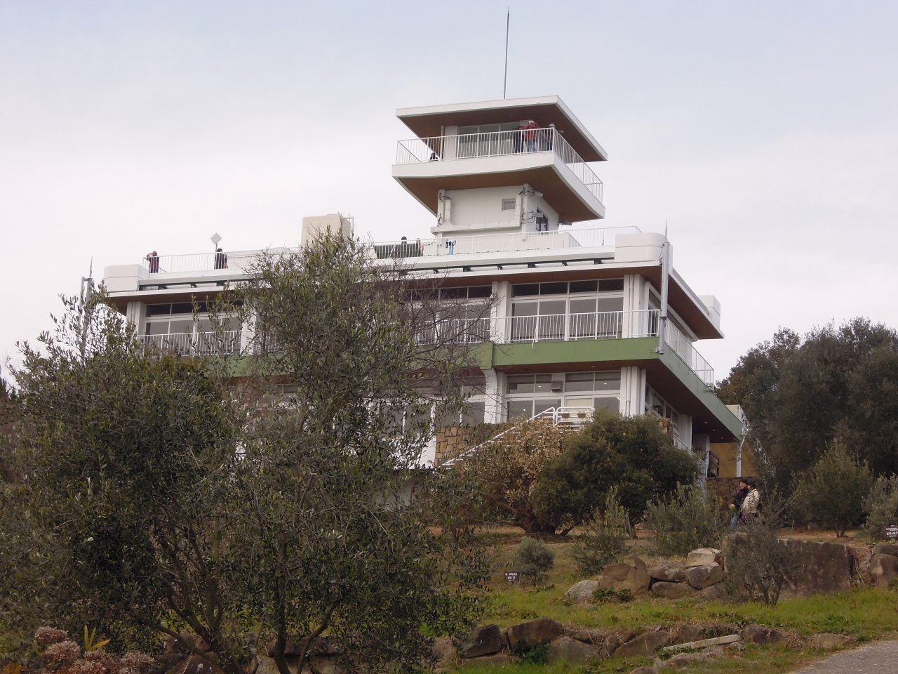 牛窓の海を見下ろす小高い丘の上にある。オリーブの木の間を遊歩していくと、ショップを兼ねた展望台があった。ショップにはオリーブの苗木や地元産品、お土産のほか、オリーブオイルやオリーブを使った化粧品、食品などが販売されている。天気が良ければここから見る瀬戸内海の多島美は絶景だ。意外だったのが、海の反対側の景色。国内最大級のメガソーラーが広がっており、その人工的な光景は瀬戸内の多島美との対比で印象的だ。駐車場はゲートをくぐったところにあるが、空いているときは展望台近くにとめられる。