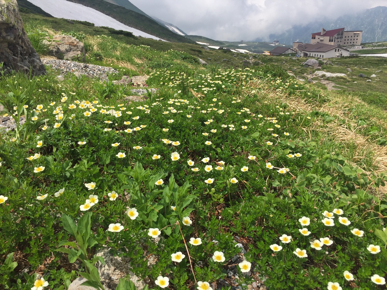 7月20日頃で お花は期待通りのお花畑。チングルマ イワカガミ ミヤマリンドウなどが咲き誇っていた。