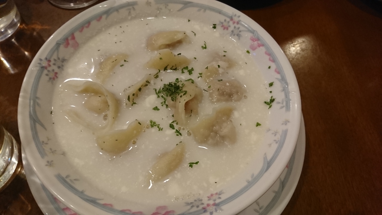 ハーブやスパイスを多用しているのにとても食べやすいです。ボルシチやピロシキなどなじみ深い料理のほかに、羊肉のハーブ焼き「シャシリーク」やキノコのポットシチュー「グリヴィ」などが人気のようでした。おすすめは水餃子「ペリメニ」。もちもちの皮にお肉がギュッと詰まってうまみたっぷり。