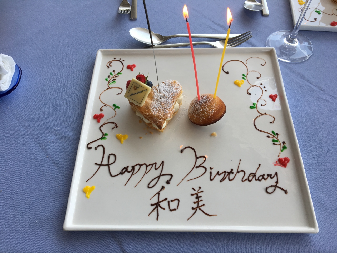 その上誕生日が近いという事もありサプライズでアニバーサリープレートもお願いしてくれてあったので、最後に記念写真までいただき更に良い記念になりました。
