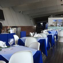 大桟橋の客船ターミナルから更に奥へ、ブルーの光に導かれるように入って行くと店内は大きな窓から差し込む光で明るく開放的。おまけに目の前が海というロケーションの良さです。