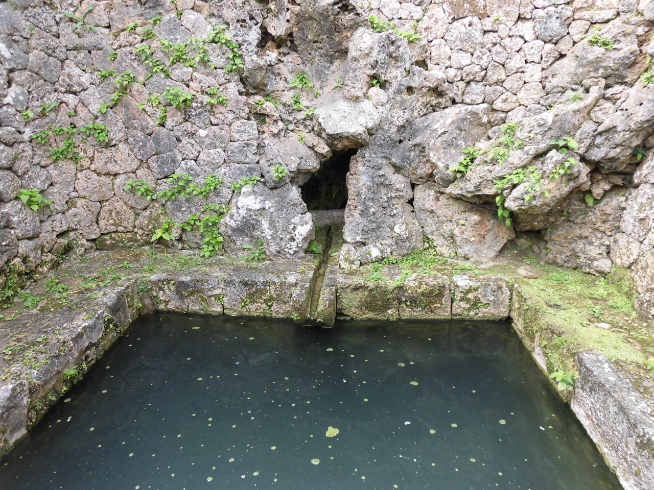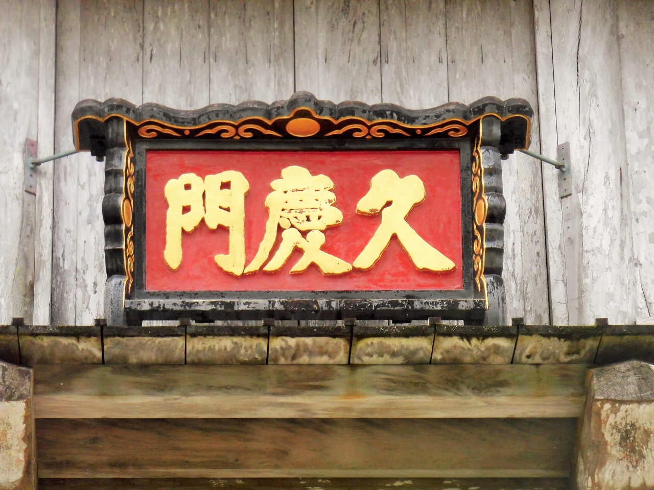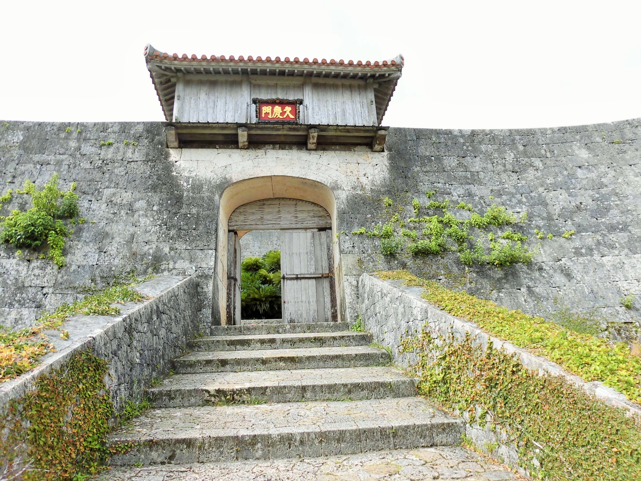 正門である歓会門に対し、この久慶門は通用門にあたり、主に一般の人や女性が利用したといわれています。現在の見学コースでは出口の門になります。石垣をくり抜いたようなおもしろい形です。また、久慶門の左手に「寒水川樋川と呼ばれる湧水が出る場所がありますので、あわせて見学されるとよいでしょう。