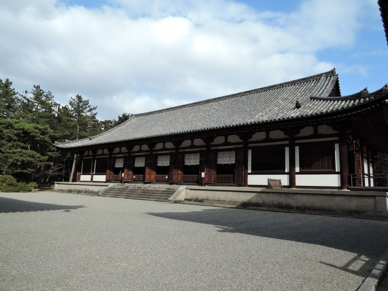立派な入母屋造りで本瓦葺きの講堂は国宝に指定されております。平城宮の改修に伴って移築されたそうです。金堂と似ておりますが、講堂の方が横に長く、柱の数が多いです。午前中に訪問したためか、混雑しておらずゆっくりと見学ができました。