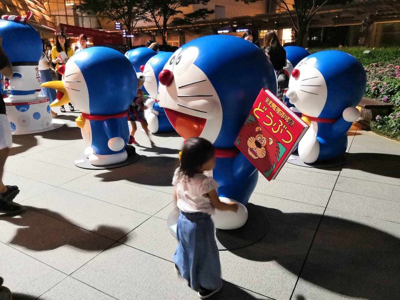 2歳の子供がドラえもんを認識して、ドラえもん!と言うようになったので、六本木まで行ってみました。猛暑なので陽が落ちた夜に訪れました。たくさんのドラえもんのオブジェがあって子供は嬉しそうでした。ポージングして写真をとっている人の邪魔をしないようにするのが大変でした。