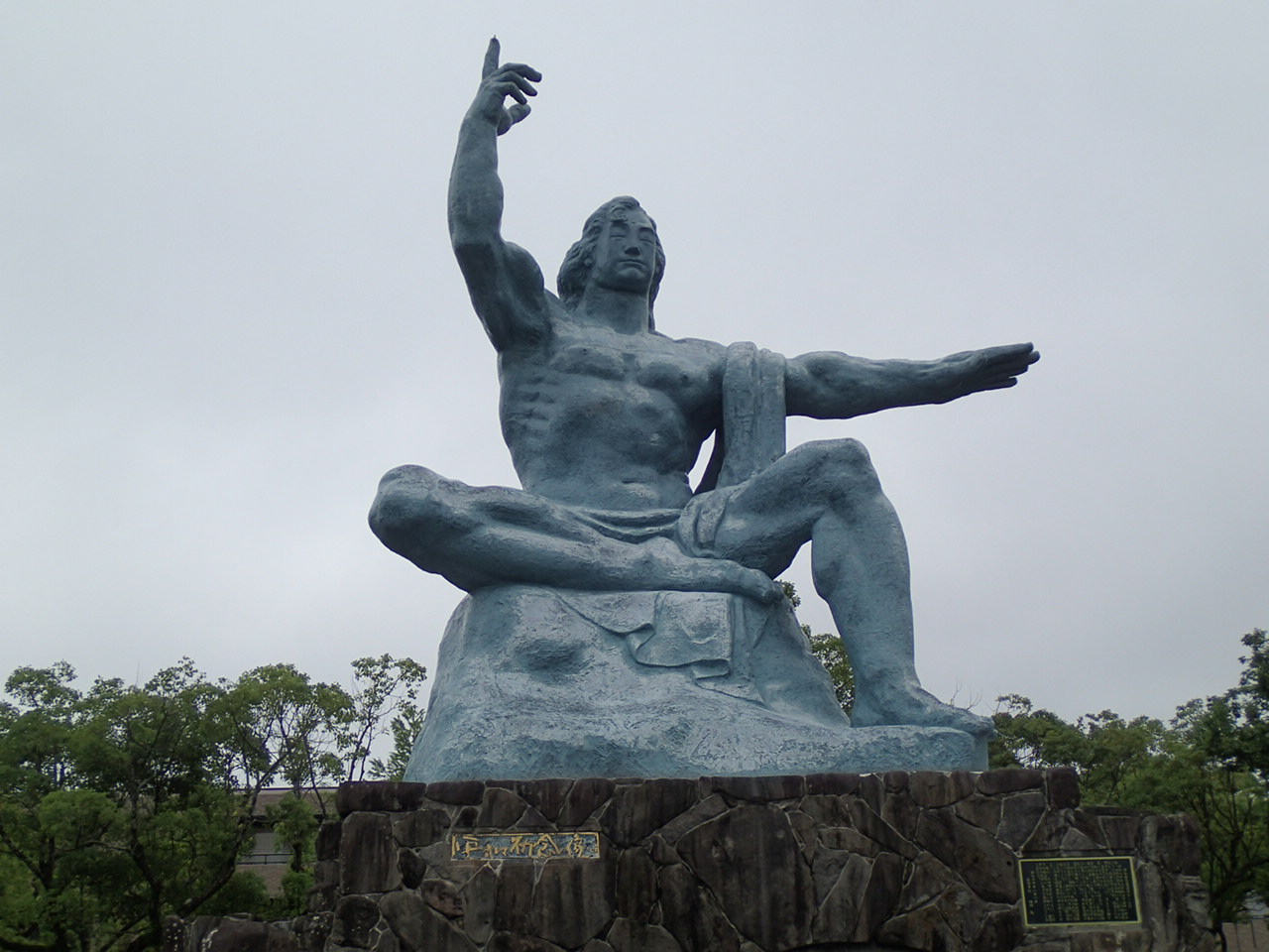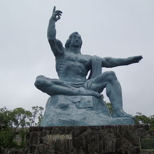 祈念像と同じポーズで写真を撮っている外国人観光客がいました。