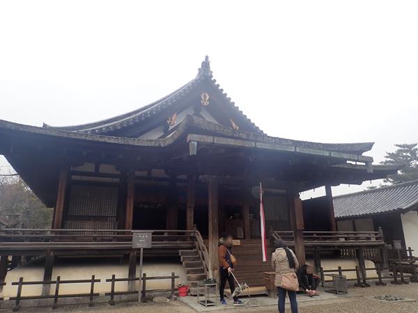 奈良交通の定期観光バスで訪れました。五重の塔、金堂などがある法隆寺の西院伽藍にあります。