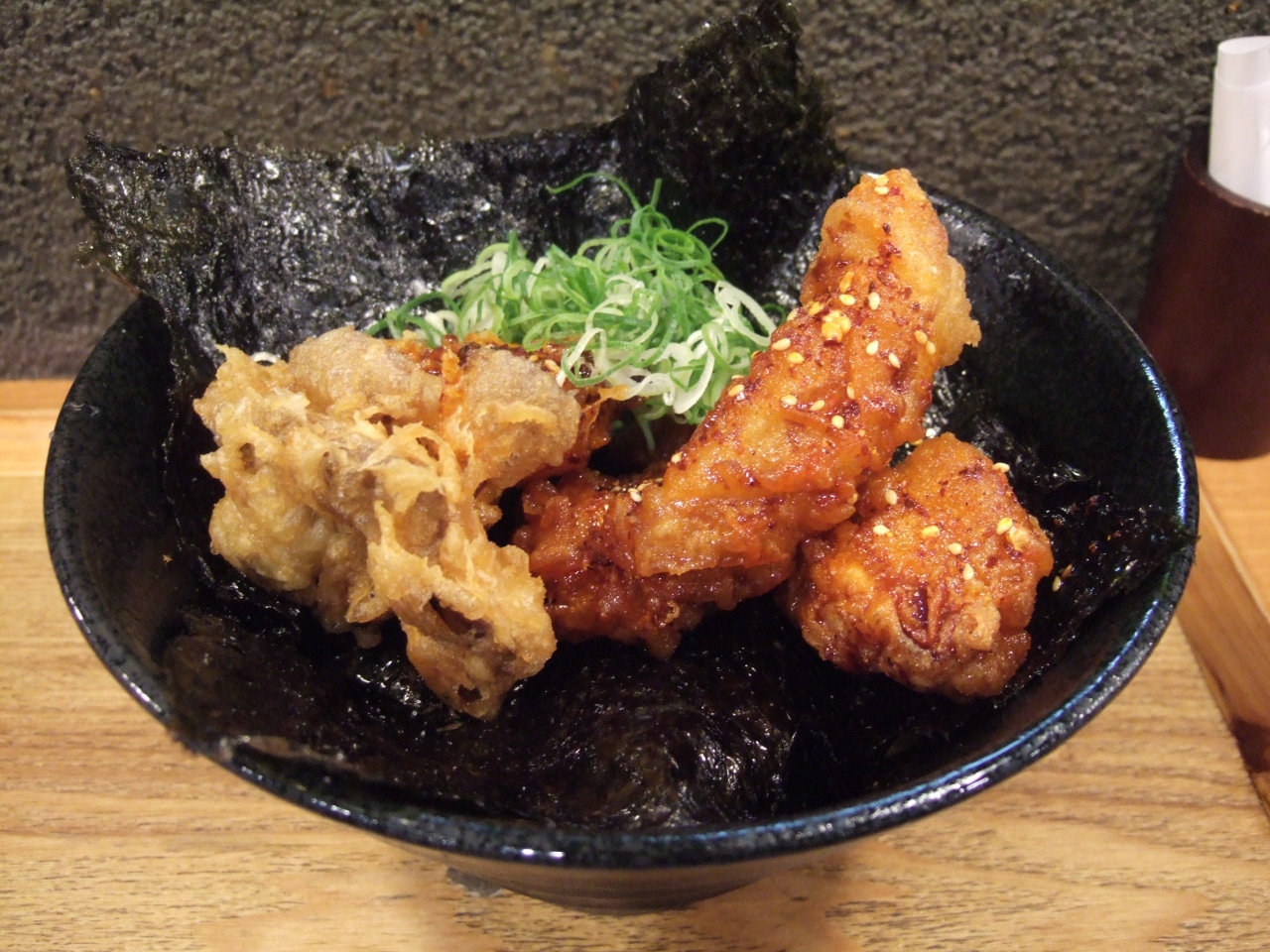 鶏天はカラッと揚がっていましたが、味付けが薄い。うどんもかえしを期待しましたが、かえしの味はほとんどせず、うどんもモチャモチャした感じで喉越しは良くありませんでした。店内禁煙なのだけは評価できます。