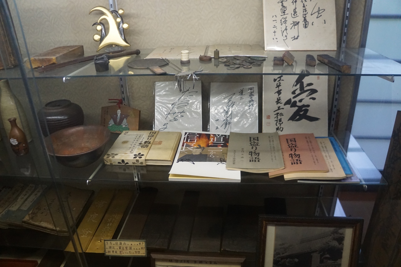 斎藤道三の関連史料等を自動的に流れる音声説明を聞きながら拝見