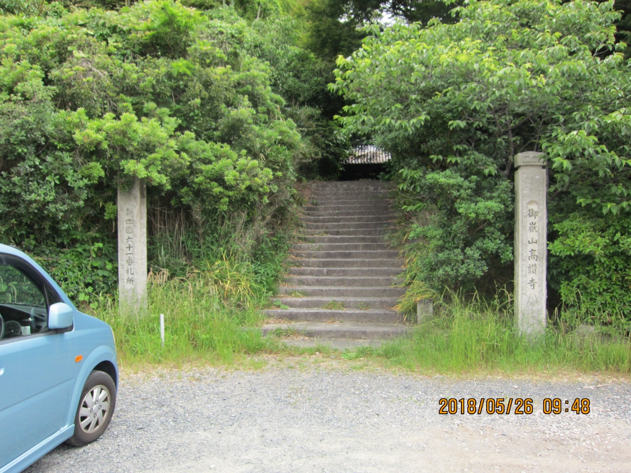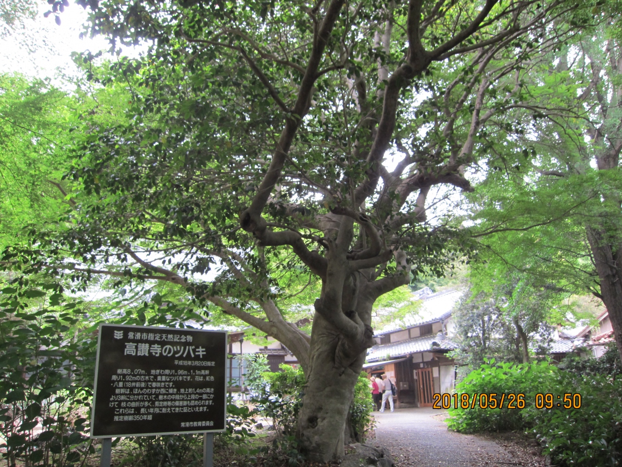 天台宗のお寺です。 階段にある入り口には、2本の石柱があり、御嶽山高讃寺と、知多四国六十一番札所と刻まれています。 参道の途中の山門には、2体の仁王様が安置されています。 境内には、樹齢350年超のツバキの巨木があります。 長い参道が清々しい感じでした。