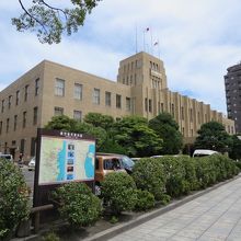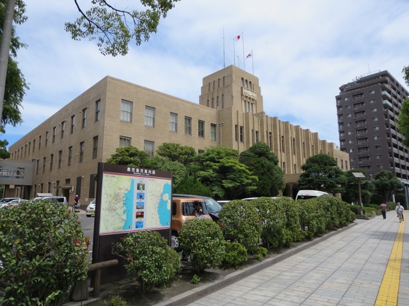 桜島へのフェリー乗り場へ行く途中に、重厚な建物が見えました。鹿児島市庁舎本館とありました。国の登録文化財ですが、現役で利用されていました。アールデコ調で正面から左右対象に美しく広がる建物でした。市役所には特に用がなかったので、外観を眺めるだけでおしまいにしました。