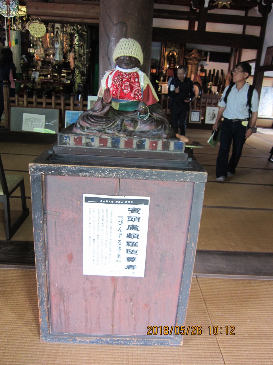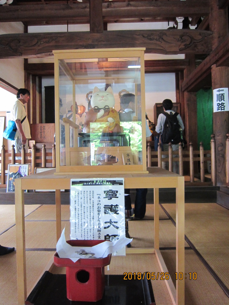 西山浄土宗のお寺です。 ご本尊は「阿弥陀如来」です。 今回は運よく本堂に祭られている「寧護大師」(ねこたいし)が公開中であり、本堂に上がり、御本尊の写真も撮ることができました。 かわいらしい帽子をかぶった、ビンズル様もおられました。