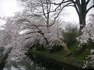 高崎駅から駅前の通りの先にある高崎市役所に向って歩いていくと10分ほどでお堀があり、高崎城の跡が公園になっています。春のサクラの時期に行くと堀の上の土手にサクラが満開で、地元の人が散策しながらお花見をしています。