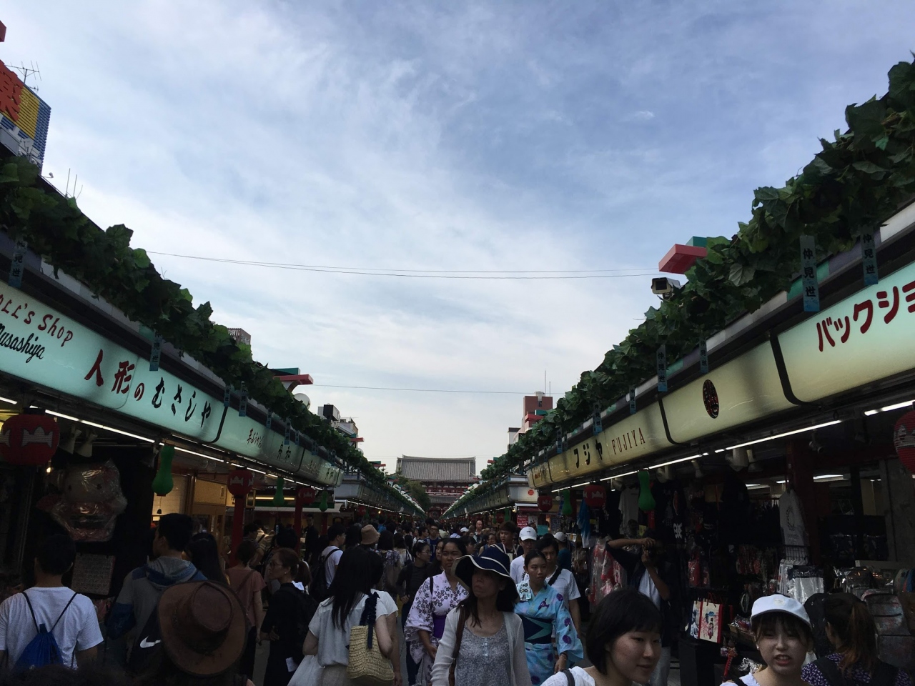 浅草寺に行く時に通る商店街。風情もありますが、とにかく人の流れがすごいです。いまは観光シーズンなので、いろいろな世界の人が多く集まっていて不思議な気持ちになれます。おみやげものだけでなく、和装小物が安いお店も多いので、呉服好きにもいい商店街なのです。