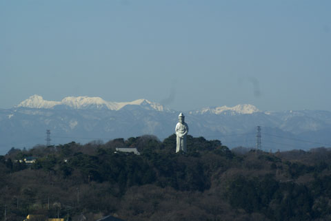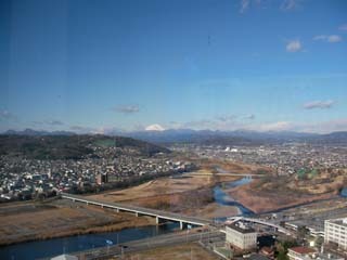 高崎駅前から続く道を10分ほど歩くと高崎市役所があり、エレベータで最上階の21階にある無料の展望台に上がると、上州の山々が見渡せます。朝の8時30分から空いていて、展望がよい日は高崎観音の後ろに八ヶ岳が見えます。