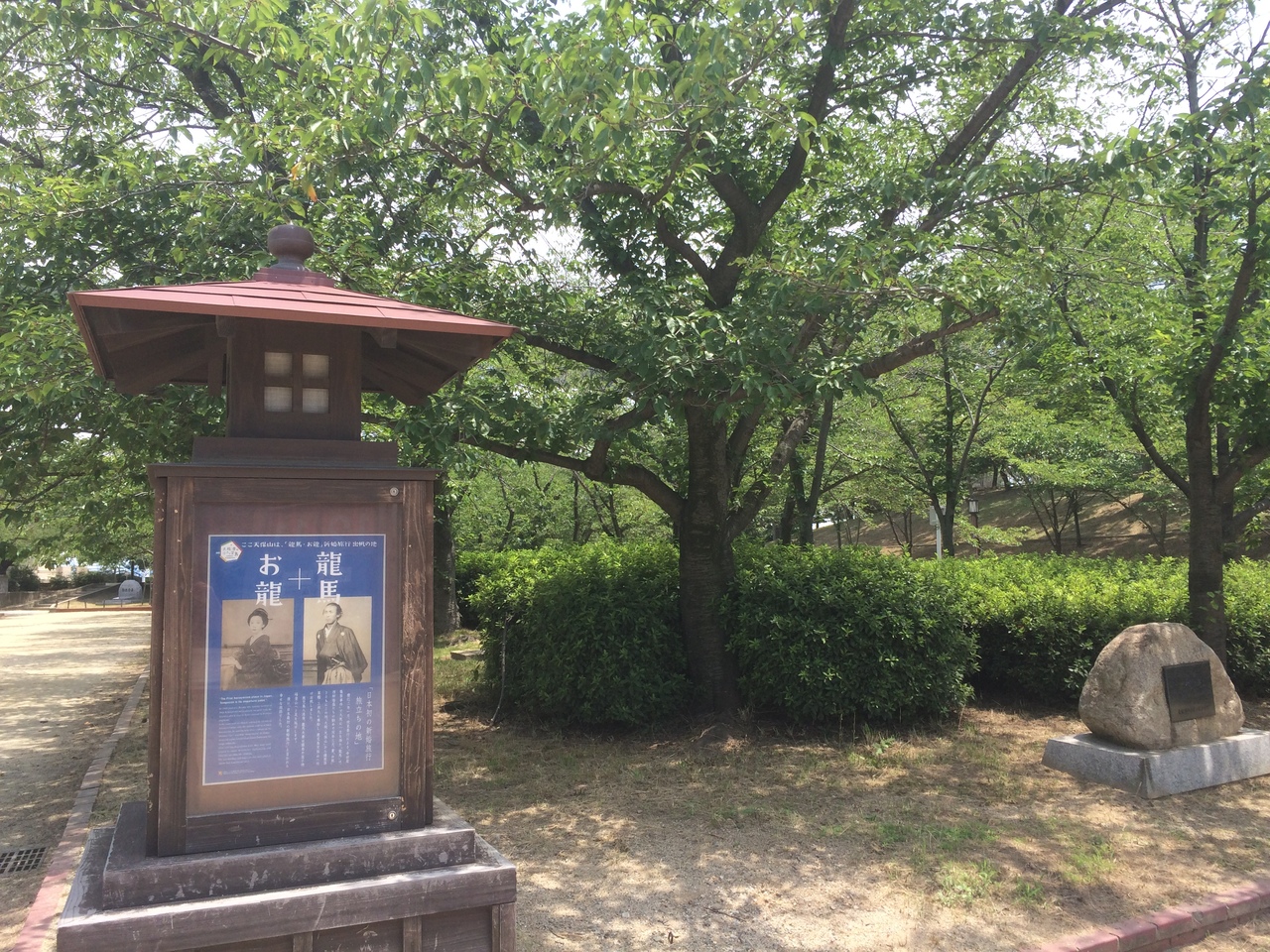 大観覧車からすぐ下に公園が見えたので行って見ました。ミニシアターのような階段があり・展望台もあるありました。入江の隣なので海風を感じらことが出来ました。お龍と龍馬新婚旅行旅立ちの場所でもあり説明看板もありました。
