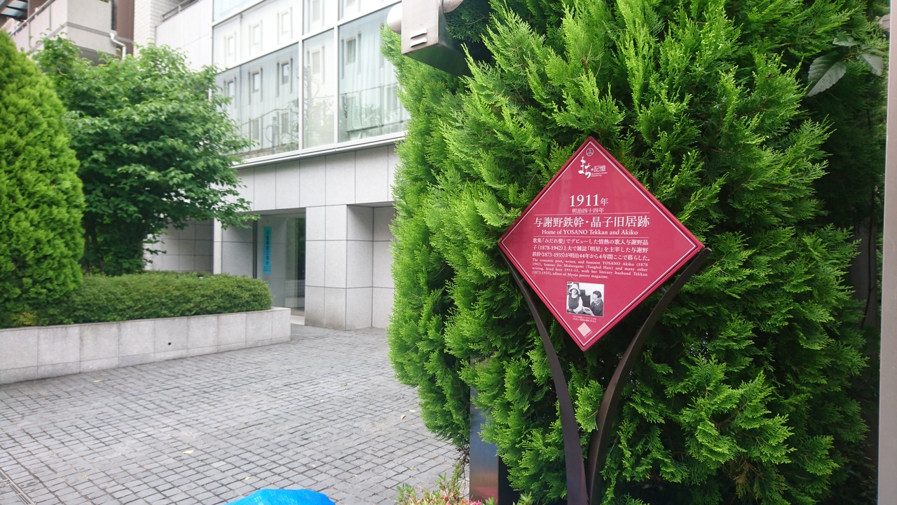 麹町を東西に走る番町文人通り沿いに、たくさんの文化人の案内プレートがありました。歌集「みだれ髪」でデビューした情熱の歌人与謝野晶子と夫で雑誌「明星」を主宰した与謝野寛が住んでいたのもこの地で、明治44年から4年間住んでいました。ただ、案内プレートがあるだけで情熱を感じることはできませんでした。