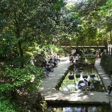 2か所の展望台から見られる澄んだ湧き水の他、実際に湧き水に触れ合える湧水広場もあった。