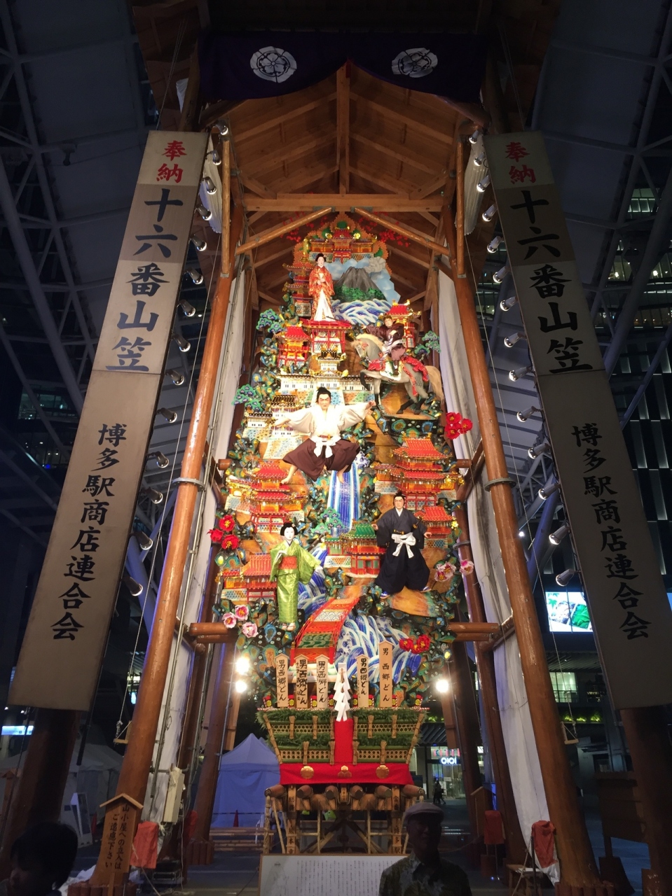 夏祭りは混雑してて暑いイメージでわざわざ突入しませんが笑、たまたま遭遇すると嬉しいものですね。出張の後ふらっと遊びに来たら、博多駅、天神駅などで飾り山を見ることができました。地元の人の愛着、パワーを感じられる気がします。
