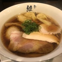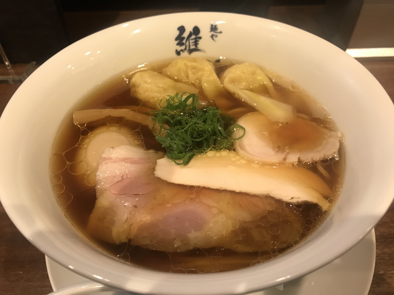 JR目黒駅から歩いて数分の大通り沿いにあります。水はセルフサービス。平日18時過ぎですぐ座れましたが、その後から一人客が続き店を出る頃には満席でした。特醤油らぁ麺はチャーシュー1枚、鶏2枚、ワンタン3個、味玉1個、めんまがのっています。麺がツルツルの中細ストレートで優しい歯ごたえ。