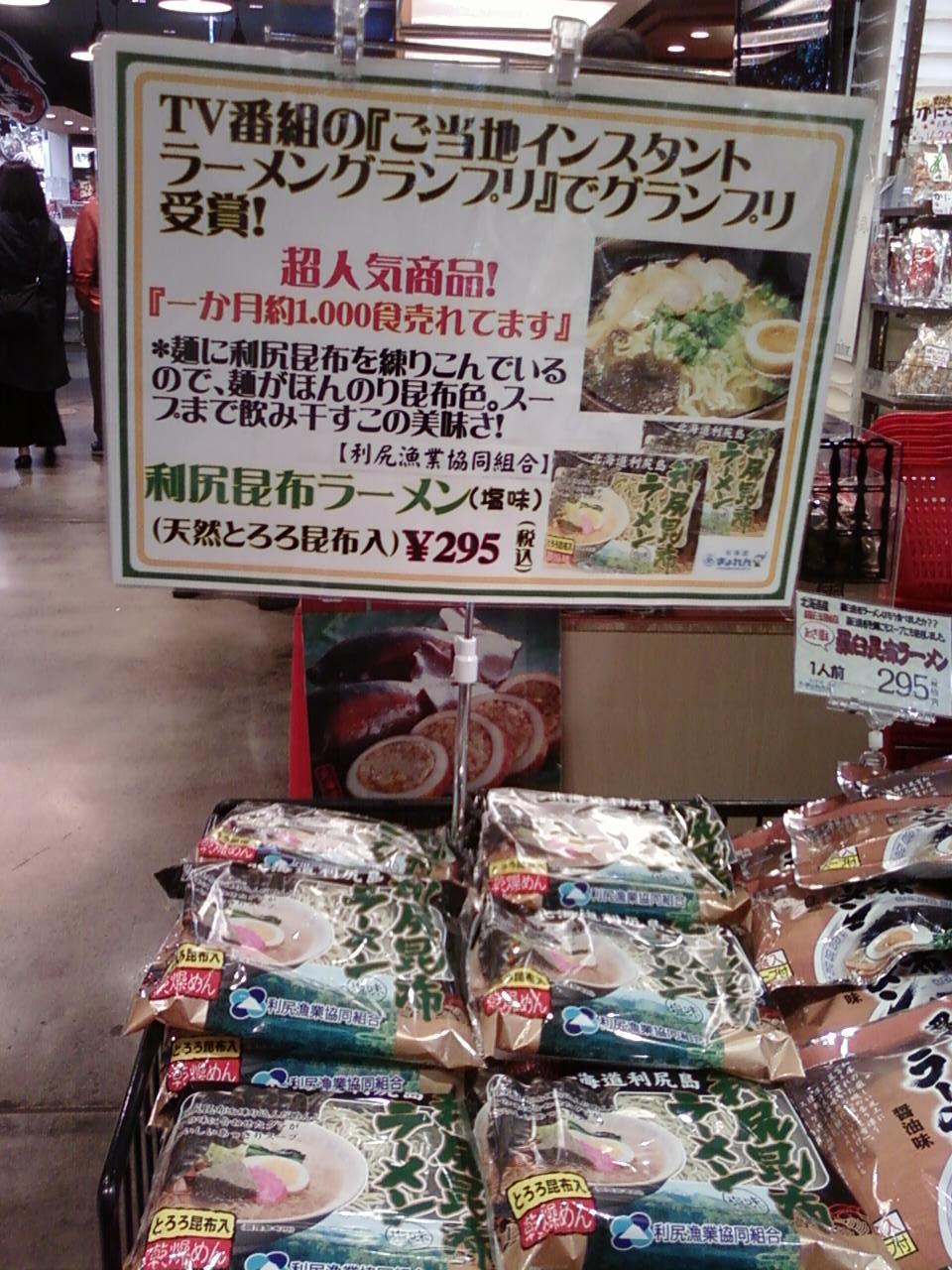 ここの北海道ぎょれんさんは、新千歳空港の国内線ターミナル2階、出発ロビーと同じフロアにあります。海の産物を中心にしたラインナップで、非常にお得感があります。まさに北海道のお土産にぴったりなものの勢ぞろいですね。特にテレビのご当地インスタントラーメングランプリでグランプリと受賞したという利尻昆布ラーメンもあって嬉しかったです。他にも、ほたてバターラーメンをいただきました。